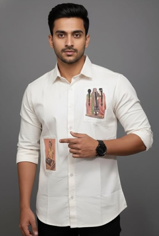 Chikiri song shirt same colour offf white premium Cotton matty fabric with patches heavy gsm limited stock